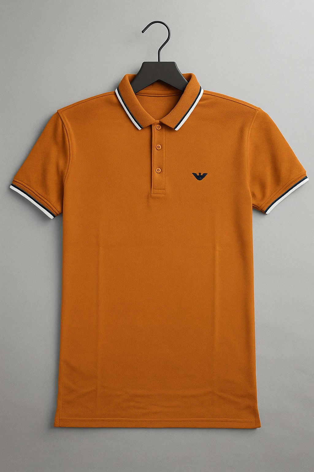 Brighten your style with our Men's Premium Golden Polo Shirt, crafted from 100% pure cotton for all-day comfort, breathability, and durability. The vibrant golden base is complemented by sleek white and black trim on the collar and cuffs, along with a matching embroidered chest logo for a modern, upscale look. Perfect for casual gatherings, smart-casual events, or adding a pop of color to your everyday wardrobe.
